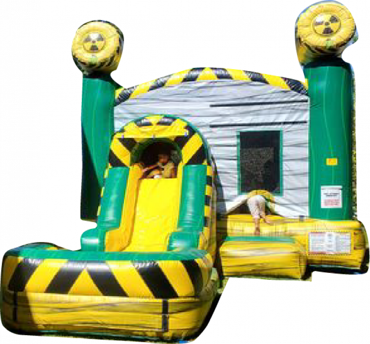 The 5 in 1 Biohazard Inflatable Combo features a large bouncer area, basketball hoop and slide which can be used with a pool or stopper to provide hours of fun. The unit was designed with mesh sides all around to have full visibility for parents and spectators.